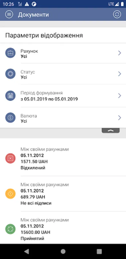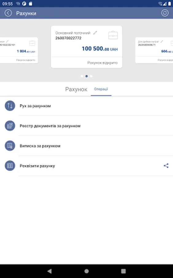 • Receive push-notifications of the movement of funds on accounts