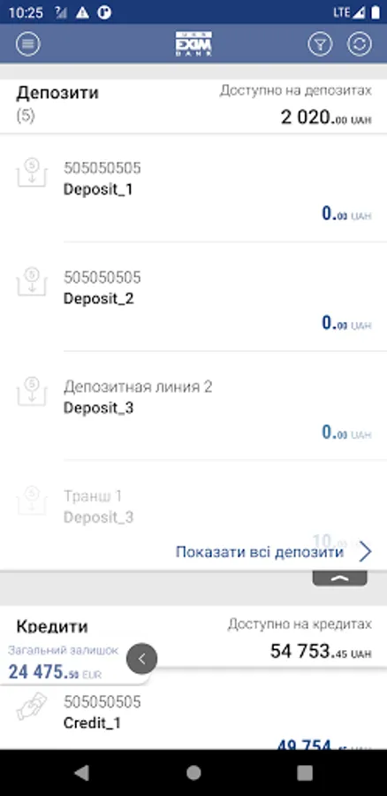 • View information on deposits and loans of your company