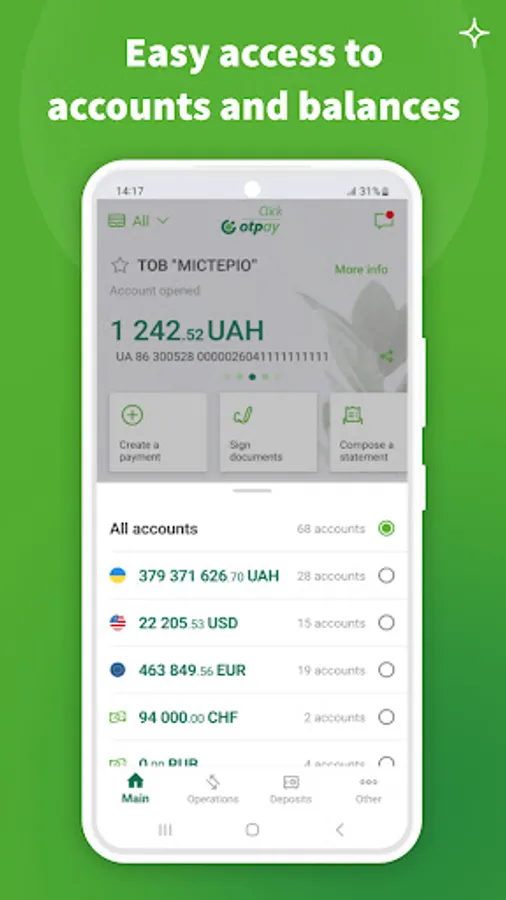 Click OTPay is mobile banking for legal entities and entrepreneurs in your smartphone. Business management is always in your hands thanks to the OTP Bank application.