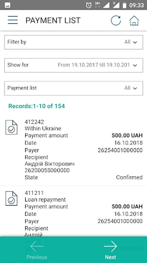 • account transactions: payments between customer’s accounts, internal payments, payments within Ukraine;