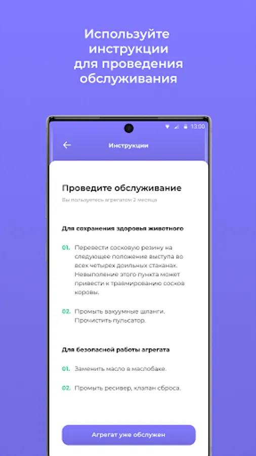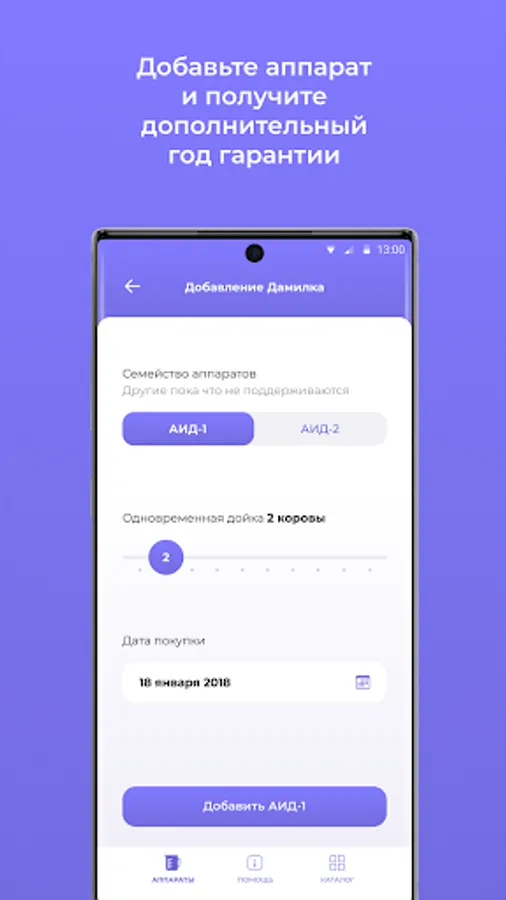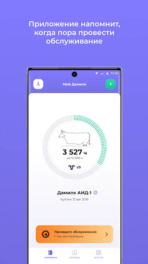 In the application you can find a catalog of goods (milking machines) and buy them.