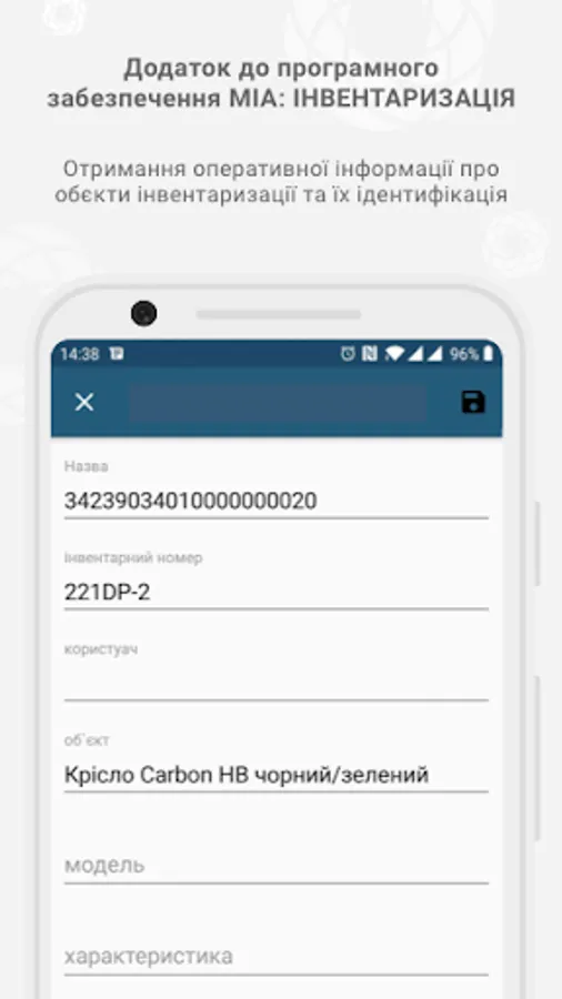 The appendix is a part of informative-analytical system of automation of inventory of non-current assets using barcode reader with data collection terminals. Application functioning requires interaction with the inventory server.
