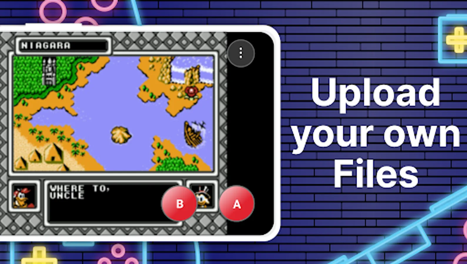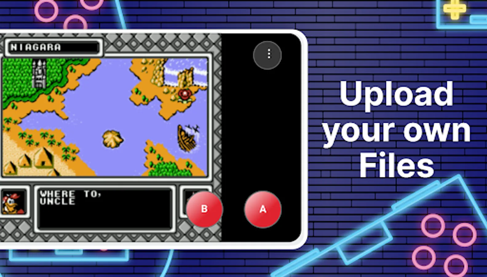 📍 Upload your own files: add your favorite rom files and enjoy playing personal retro collection.