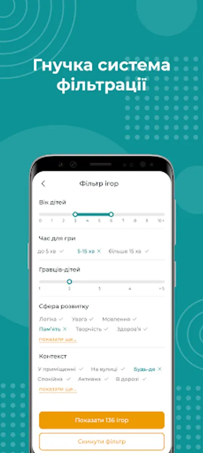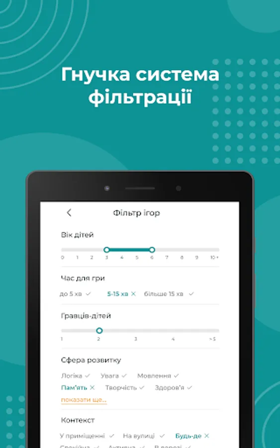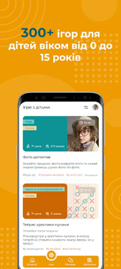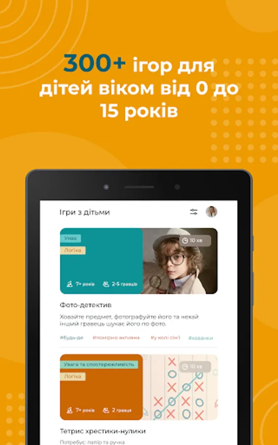 Comprehensive catalog of 300+ children's games for any place (room, street, transport), direction of development and age with a flexible filter.