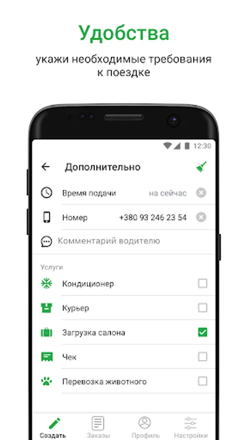 • Creation of pre-order - create order in advance if you need to go to the exact time, such as station, airport