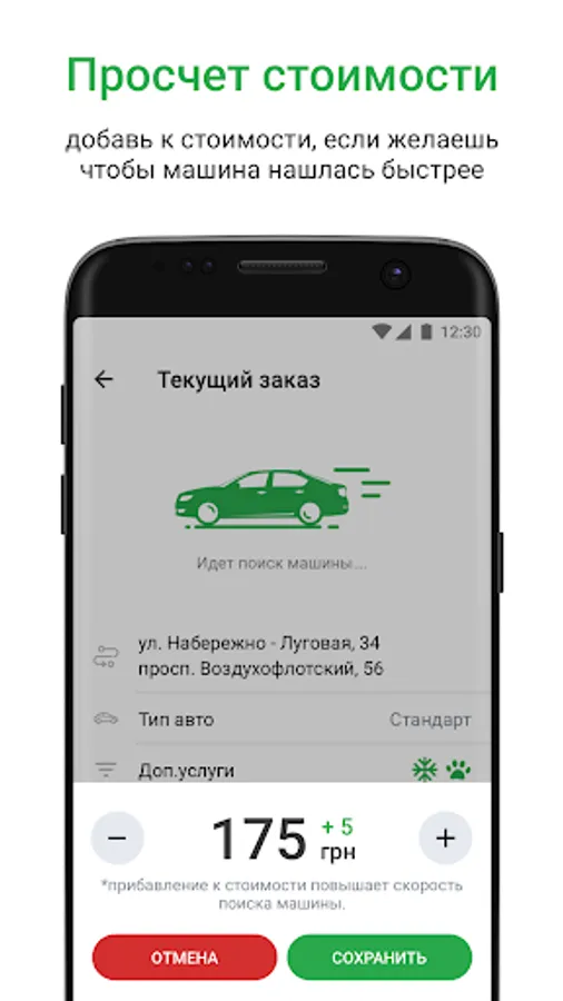 • adding value to order - for faster searching cars, you can slightly increase the cost of travel