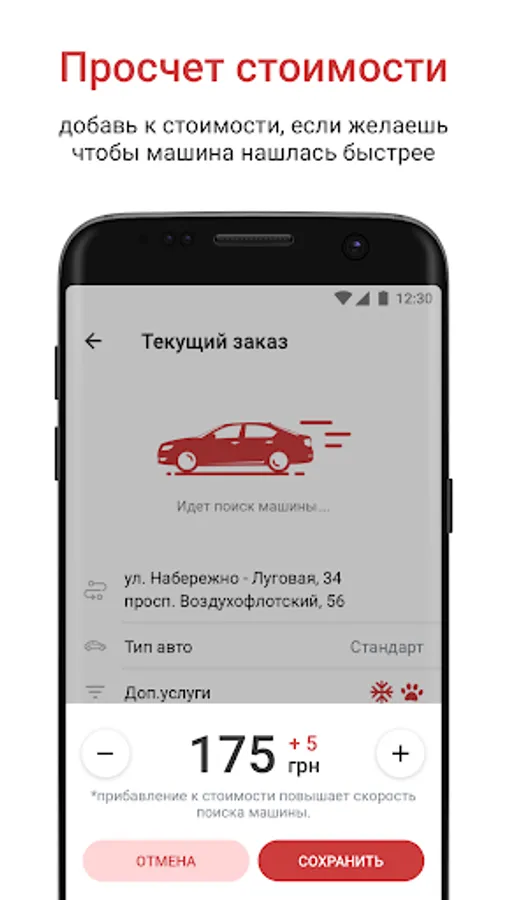 - the possibility to increase the fare for a faster car search