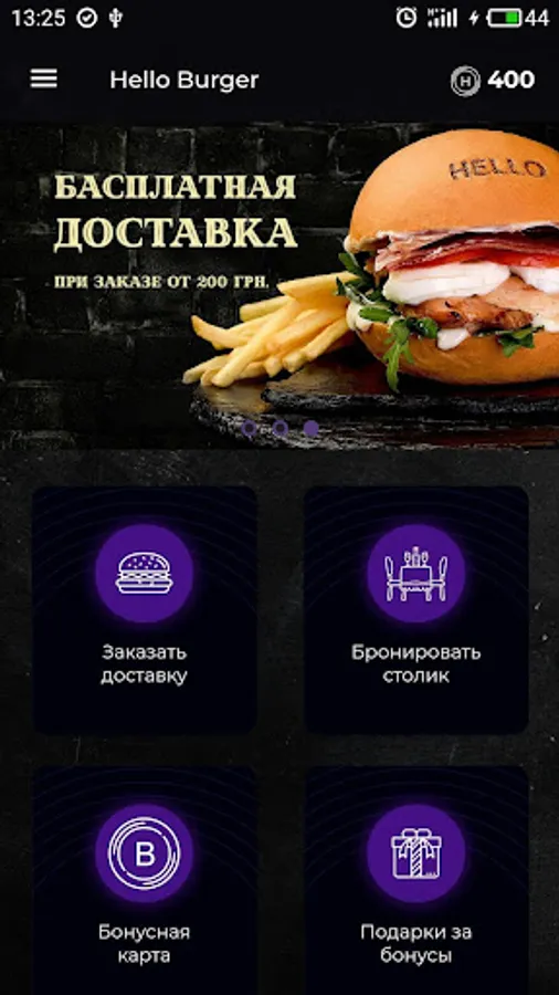 In addition to delicious food and high quality service of Hello Burger impresses guests with its unrivaled atmosphere - a soft relaxing music, shelves with books and games, wi-fi, the lower hall with a huge screen and a projector, where the live broadcasts of major sporting events, movie nights and more