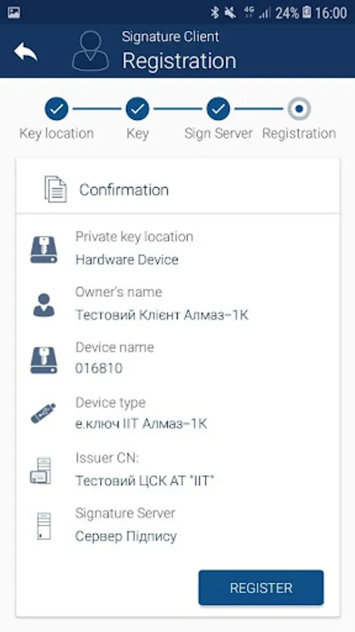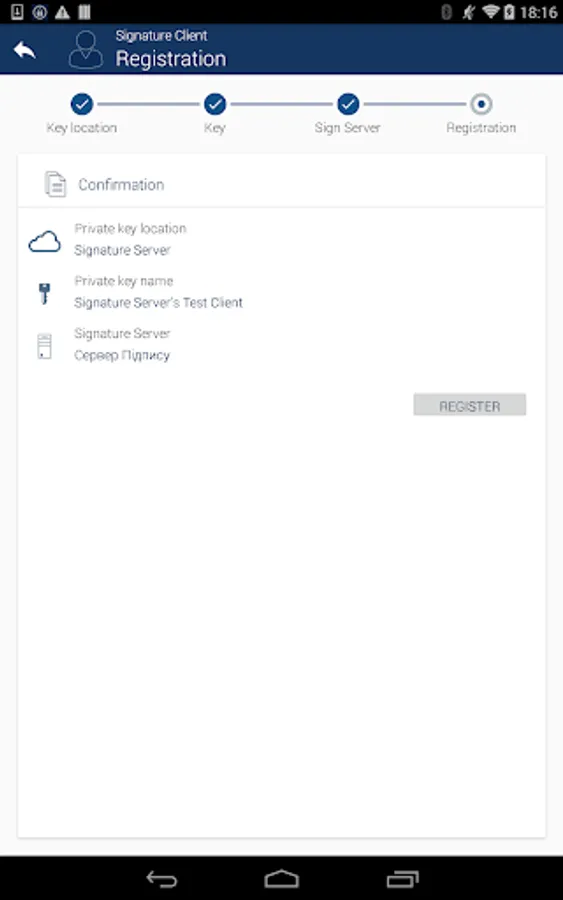 Designed to sign data using private keys in files and on key medias (electronic keys) and keys stored in network modules on signature servers
