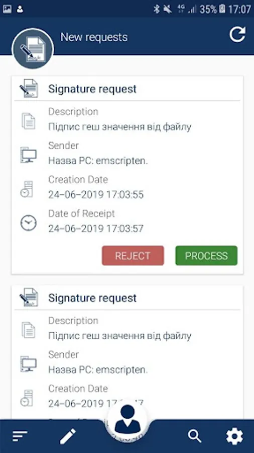 IIT Sign Client Screenshots