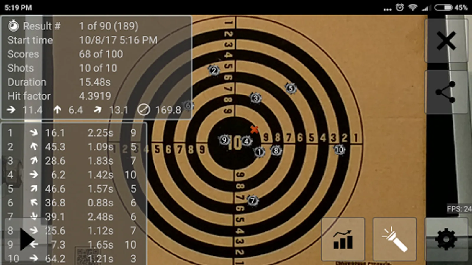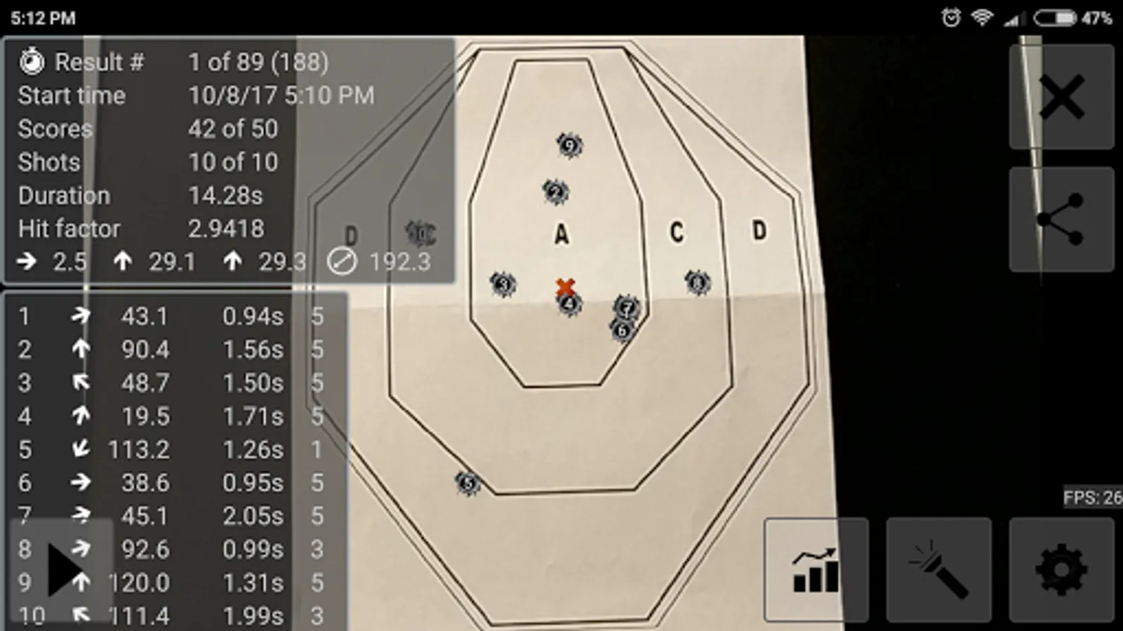 - On slow devices can not get enough speed data read from the camera (FPS). For reliable recognition of shots FPS in a drill mode must be more than twenty (displayed in the lower right corner). Please note that in a drill mode the FPS may be higher than in a preview mode (for a better shots recognition).