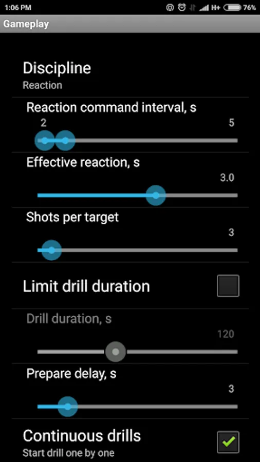 -Set up the gameplay: the accuracy or the reaction, the number of shots in the drill, drill time, time to prepare.