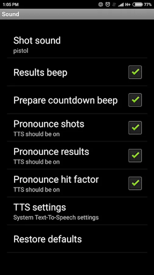- Adjusting the sound (the sound of the shot, the completion of a drill, the uttering aloud result and hit factor).