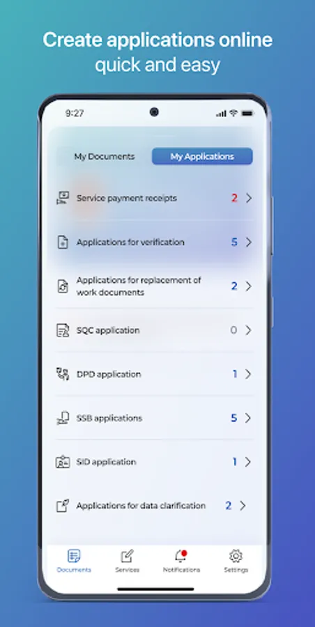 — View information about all your available documents, allowing you to easily track their status and expiration dates.