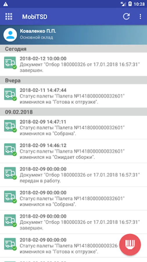 The application is designed to operate the mobile device as a data collection terminal. Is a specialized solution for interacting with the program 1C: Warehouse.