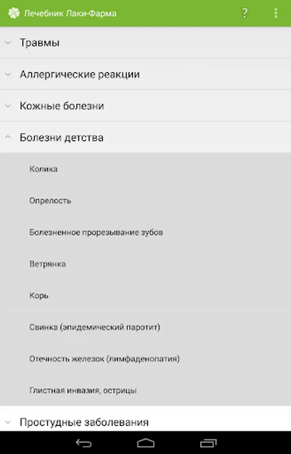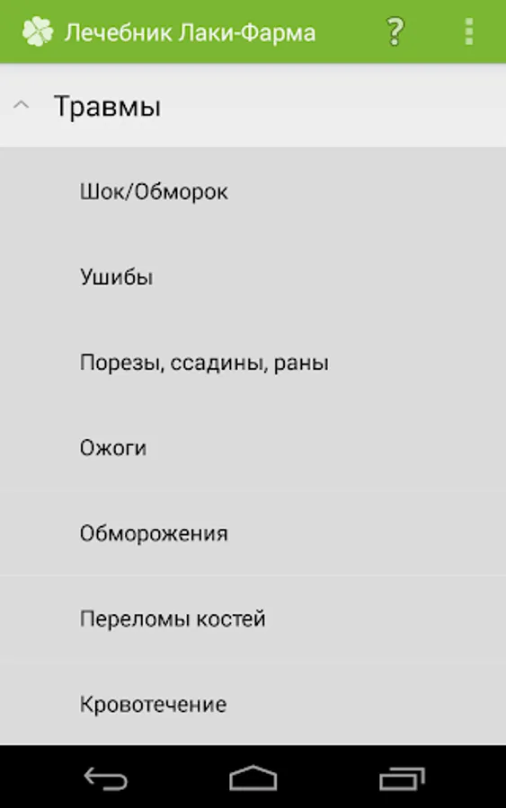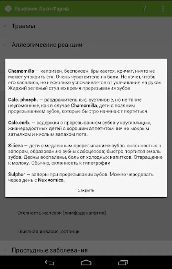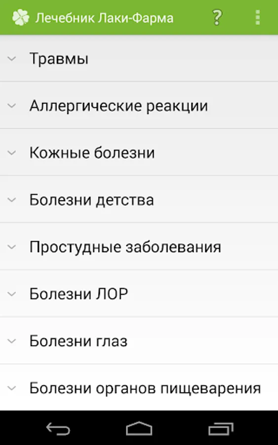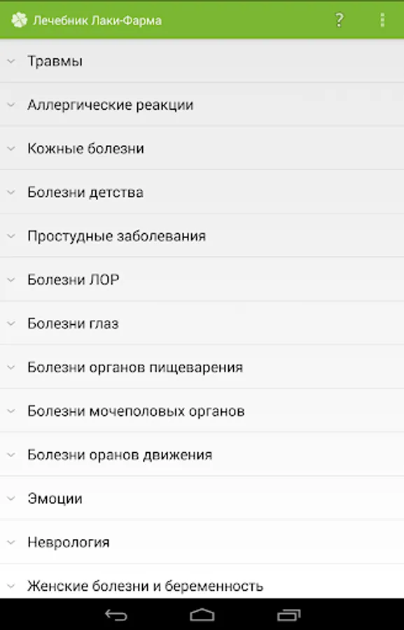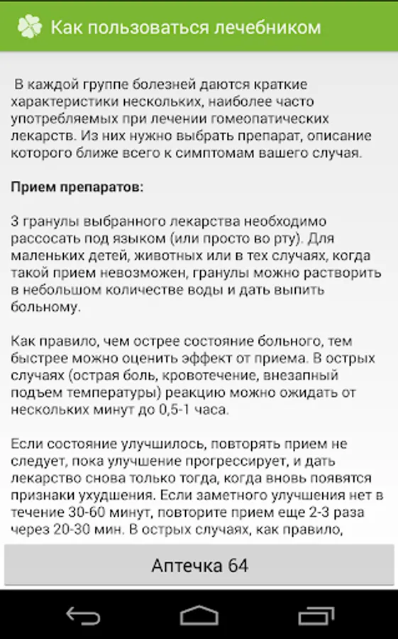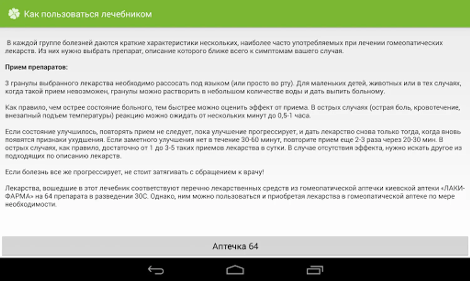 Lechebnik Lucky Pharma - Directory of commonly used homeopathic medicines for various acute diseases for which emergency assistance is most effective homeopathic. Thanks to the convenient grouping of diseases and a detailed description of symptoms, you can quickly pick up the drug corresponding to your case.