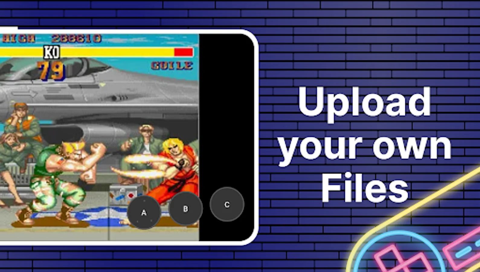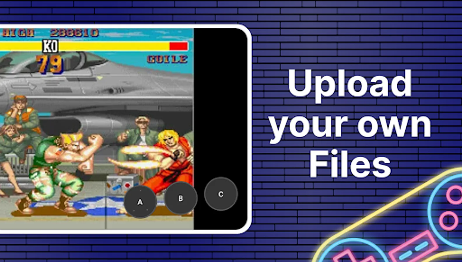 The retro games emulator for Android allows you to download demo files or upload ROM files from your device and enjoy your favorite console games.