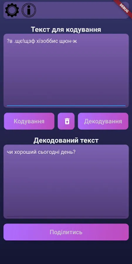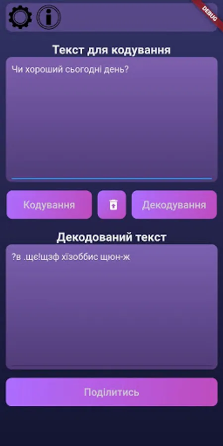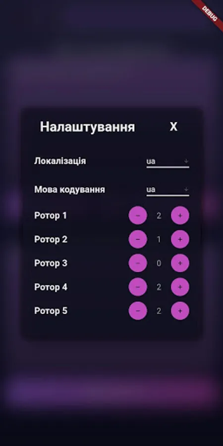 The application simulates a rotor-based encryption algorithm, similar in principle to the well-known "Enigma" encryption machine.