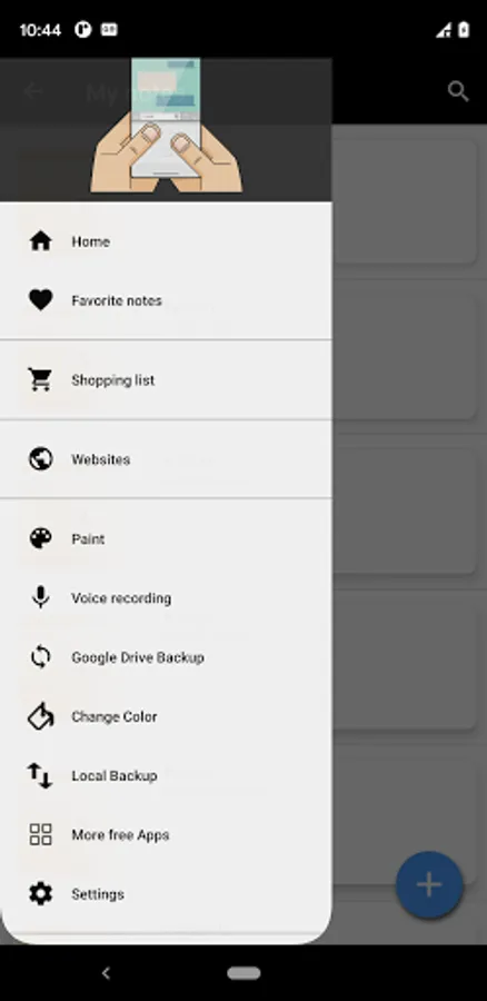 - Local backup is also possible. All files are stored in the folder / FolderNotes