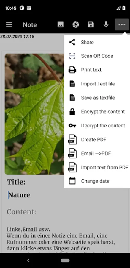 Enjoy our notepad for android with a lot of nice features to write and save your personal notes. You can use is as an diary app too.
