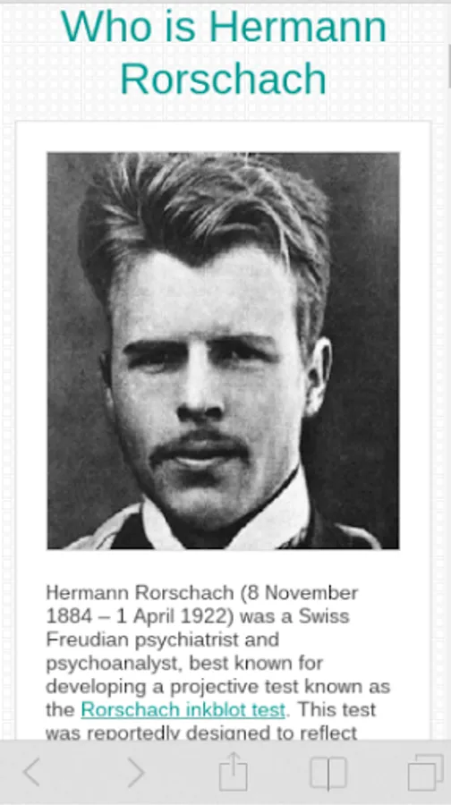 Hermann Rorschach Test is a psyhological test allows investigate personality in detail and determine the disorder of the person's psychological state. This test is also known as the Rorschach Inkblot Test.