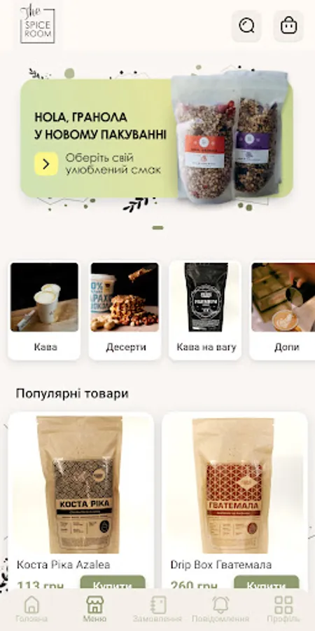 To start taking full advantage of Spiceroom, all you need to do is go through a simple registration with your name and phone number. Immediately after that you get access to the catalog, where you can find everything that only the soul of a discerning coffee lover wants. Choose the offer that best suits your mood and order delivery. From now on, everything is under control and Spiceroom will let you know at what stage your order is and when you will receive it.