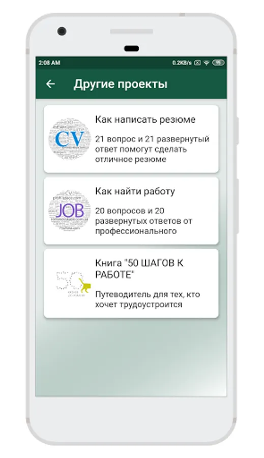 The application "How to pass the trial period" is the third part and the logical continuation of the applications "How to write a resume" and "How to find a job".