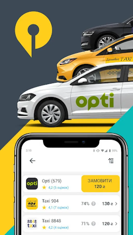 Taximer is a service for choosing taxi services in Ukraine. By choosing a route, you have the opportunity to compare prices, the probability of car delivery and choose the best taxi service for the trip. For effective selection, it is possible to sort services by various criteria.