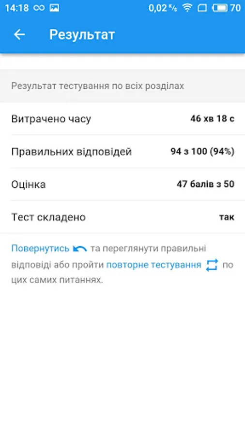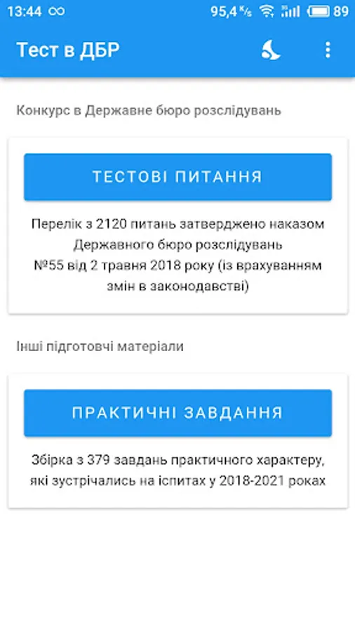 The proposed educational application contains a list of test questions with answers and their variants that will be on official testing and, thanks to the implemented functionality, significantly facilitates and speeds up preparation.