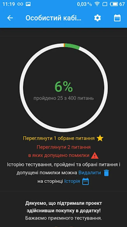 - The possibility of adding questions to the "favorites" and passing a separate test on them;