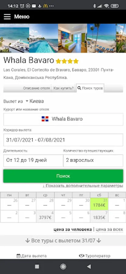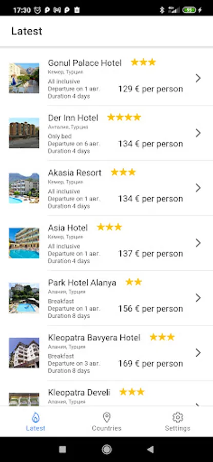 In the application you will find tours from the main tour operators of Ukraine: JoinUp, Anex tour, Coral Travel, Tui, Tez Tour, Pegas Touristik, Kompas, TPG, ALF and others.
