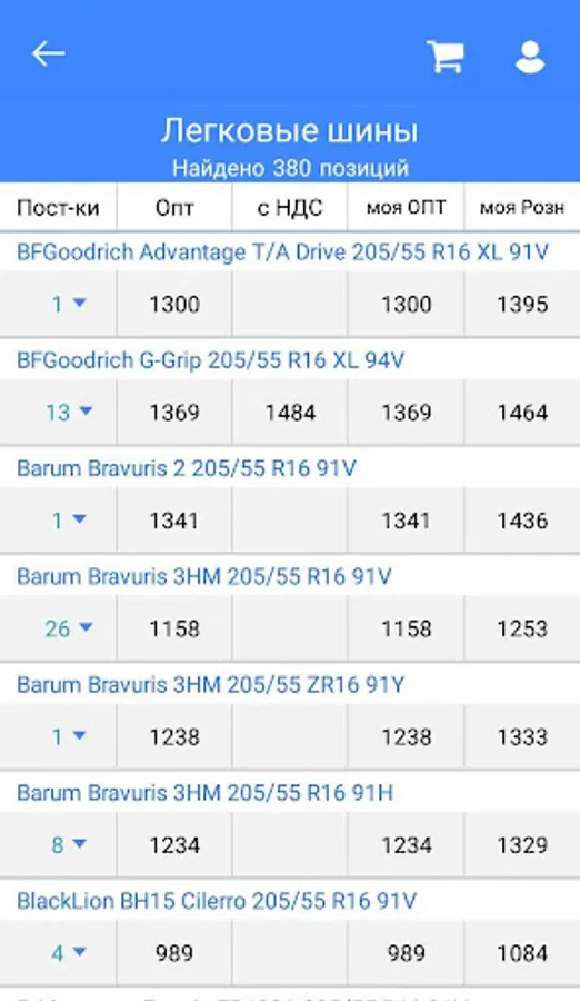 • Full analysis function price list provider to purchase tires on the warehouse.
