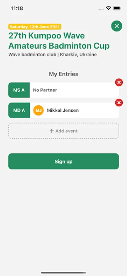 Sign up for tournaments and other events directly in the app