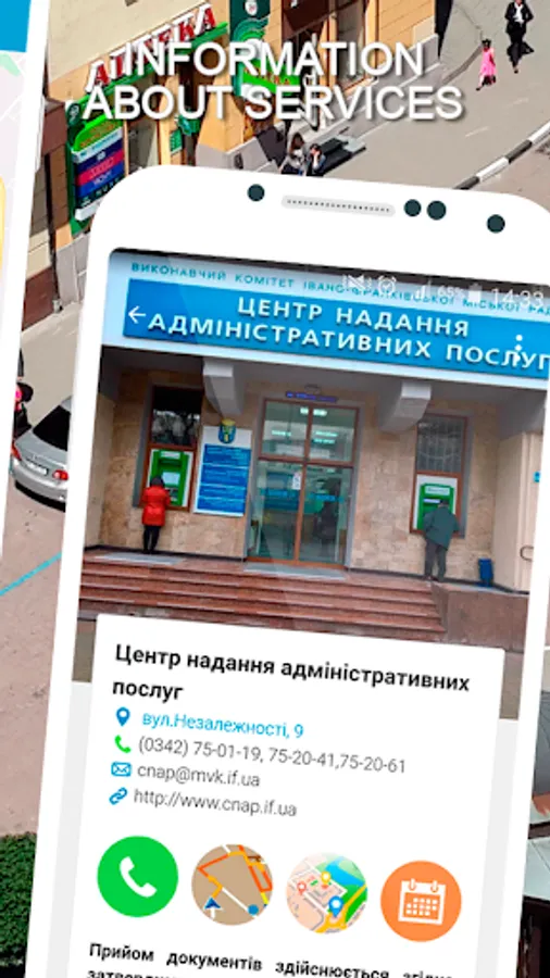 You can also get information on the city news and authorities, the availability of services at the NCAP, events that take place in the premises of the Ivano-Frankivsk City Council and museums of the city.