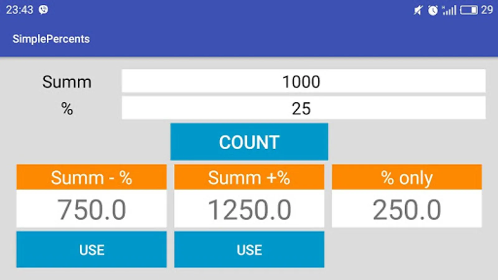 A small simple program for calculating interest. It is possible to reuse the results. Will help in the work, will show a real discount in the store, will calculate the exact price.