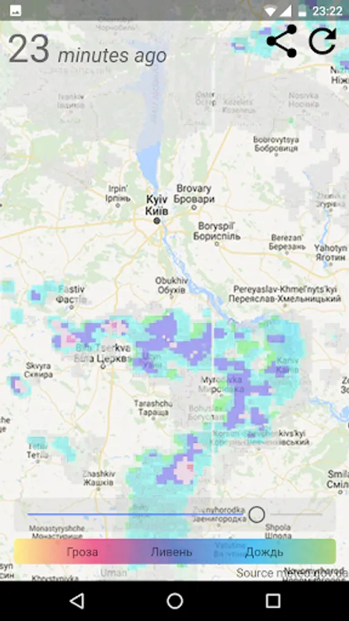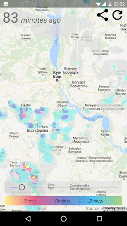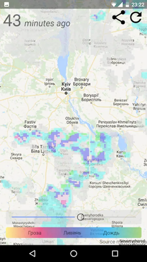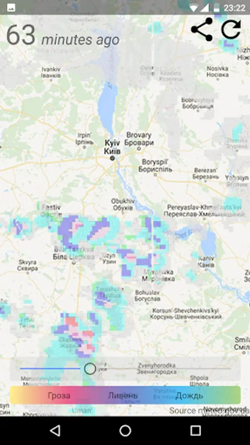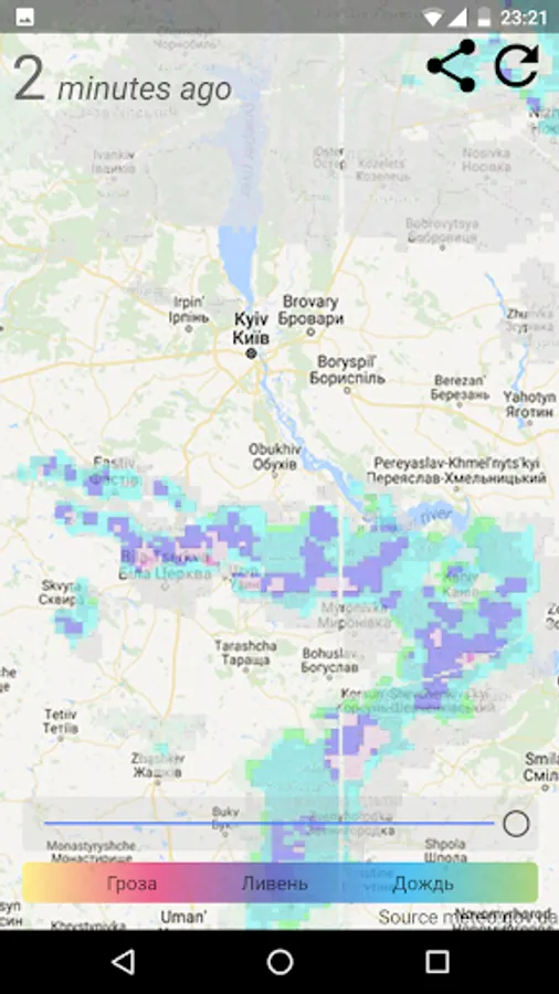 The weather - rain, snow, hail, thunder right from the radar in Boryspil airport.