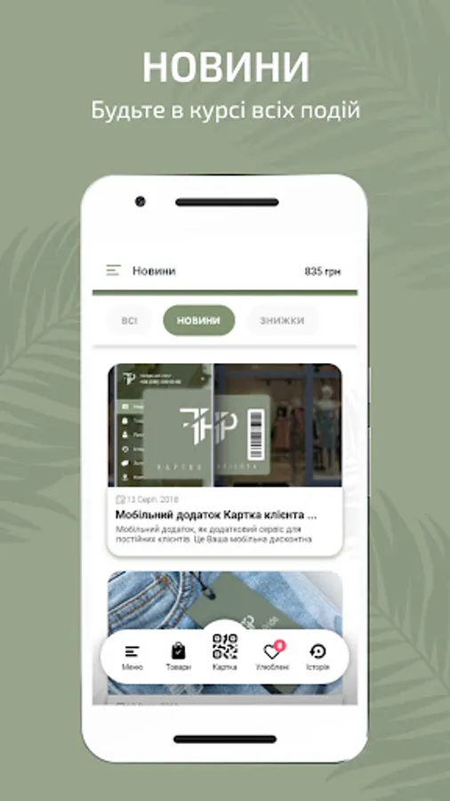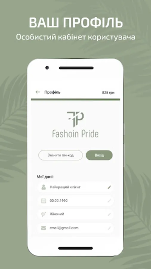 Loyalty program for customers "Fashion Pride". Helps customers accumulate bonuses for purchases, as well as watch the latest news.