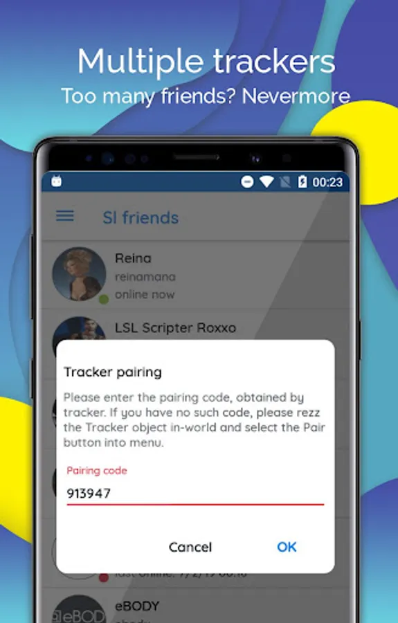 *** The application and the in-world tracker object don't use your Second Life password. We respect our customers, so no hacking or illegal things. To pair tracker with the app the random pairing code will be used. ***