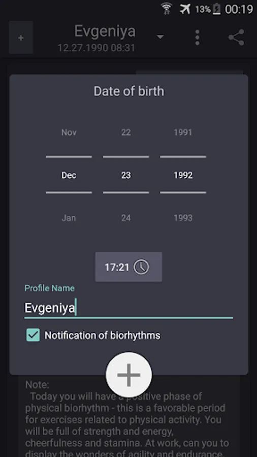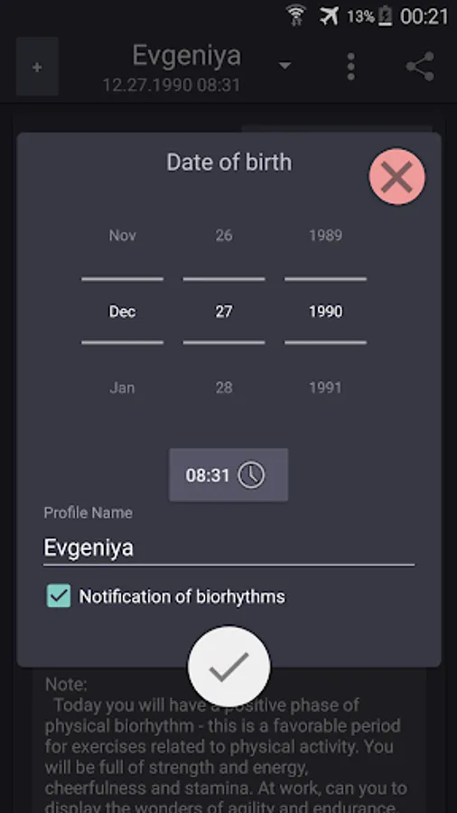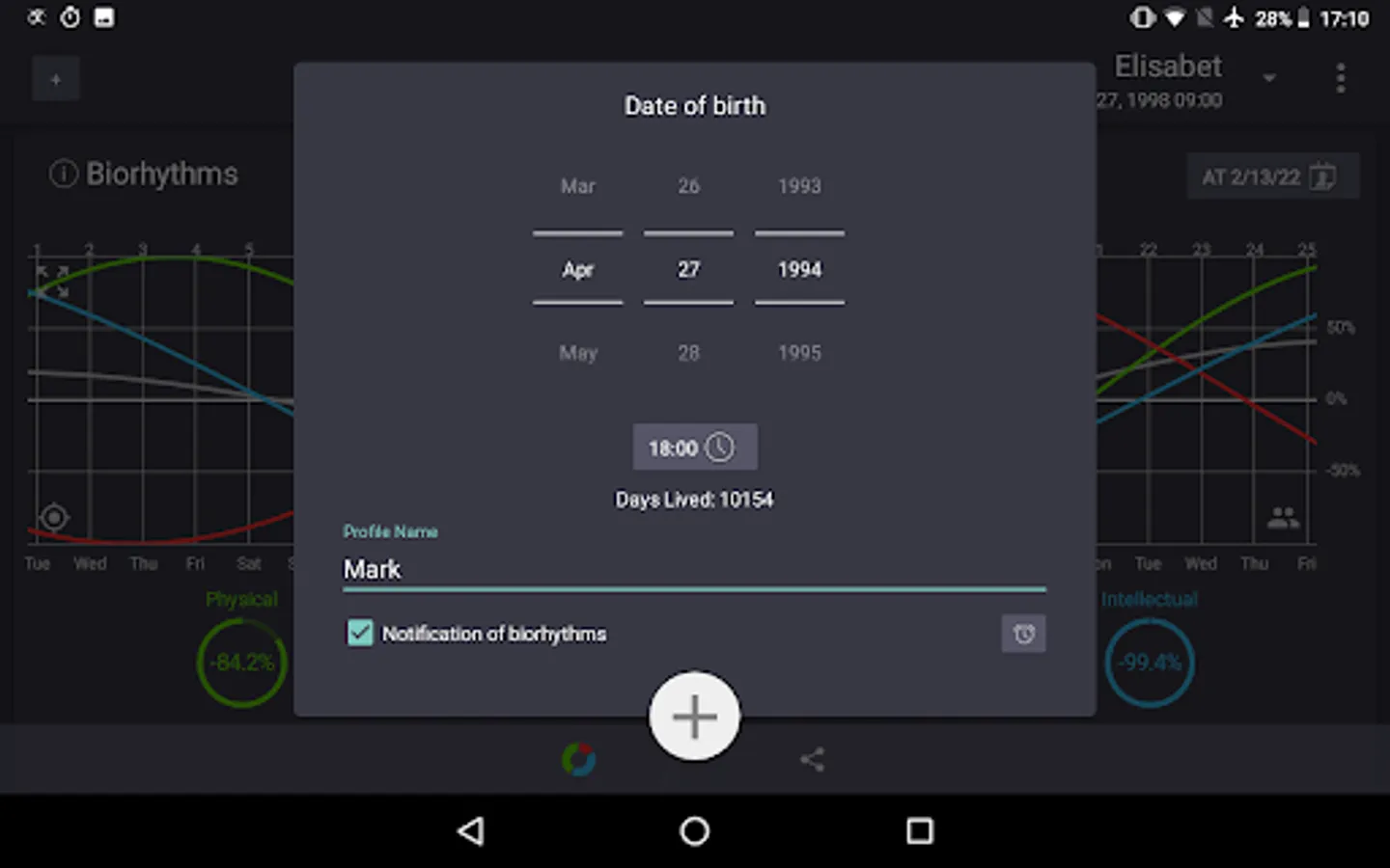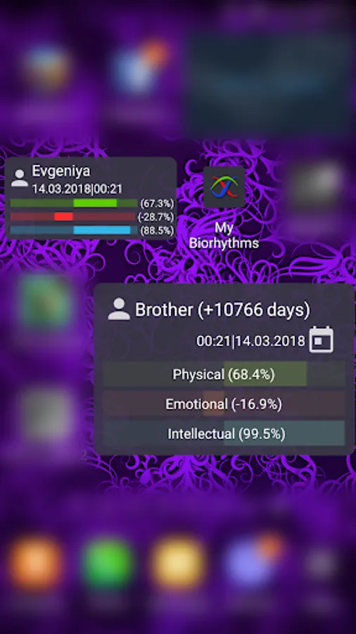 That's all! Use the calculation of biorhythms with this application to control your health and improve your performance. Good mood and good luck for the day!