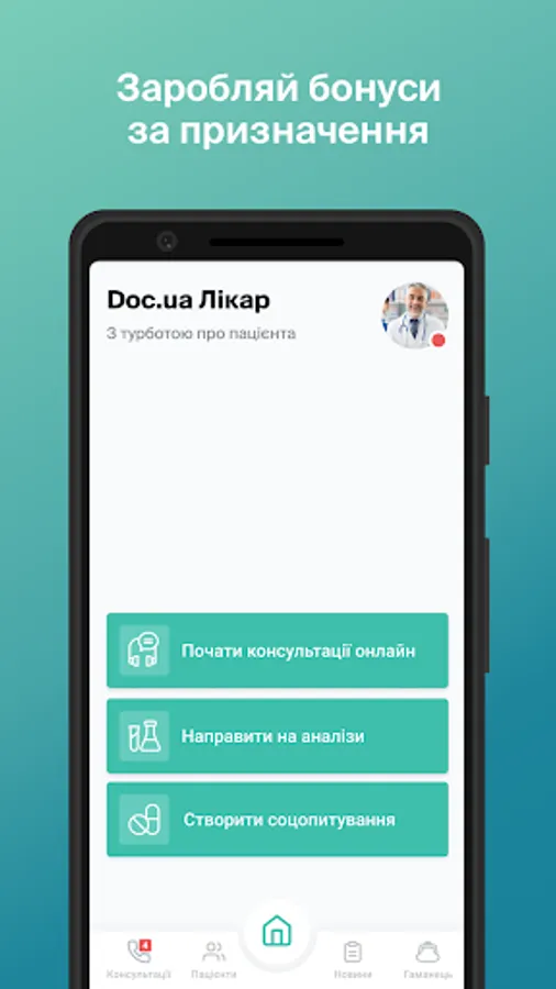"Doc.ua mobile application Doctor is a simple tool of legal earnings for doctors.