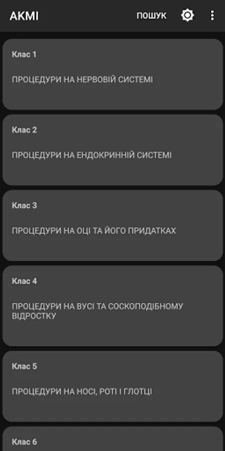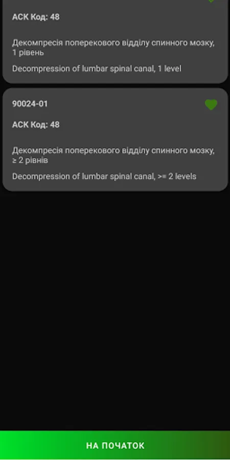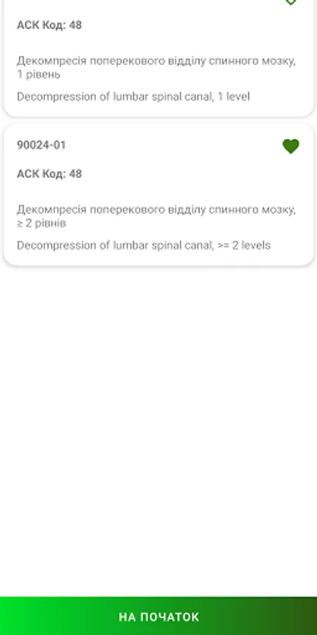 The program contains codes of medical interventions necessary for the transfer of information to the NHSU.