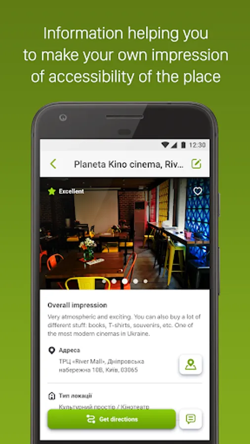 A large number of filters allow you to find a location to have a good time without any inconvenience caused by looking for help to get to an architecturally inaccessible location.