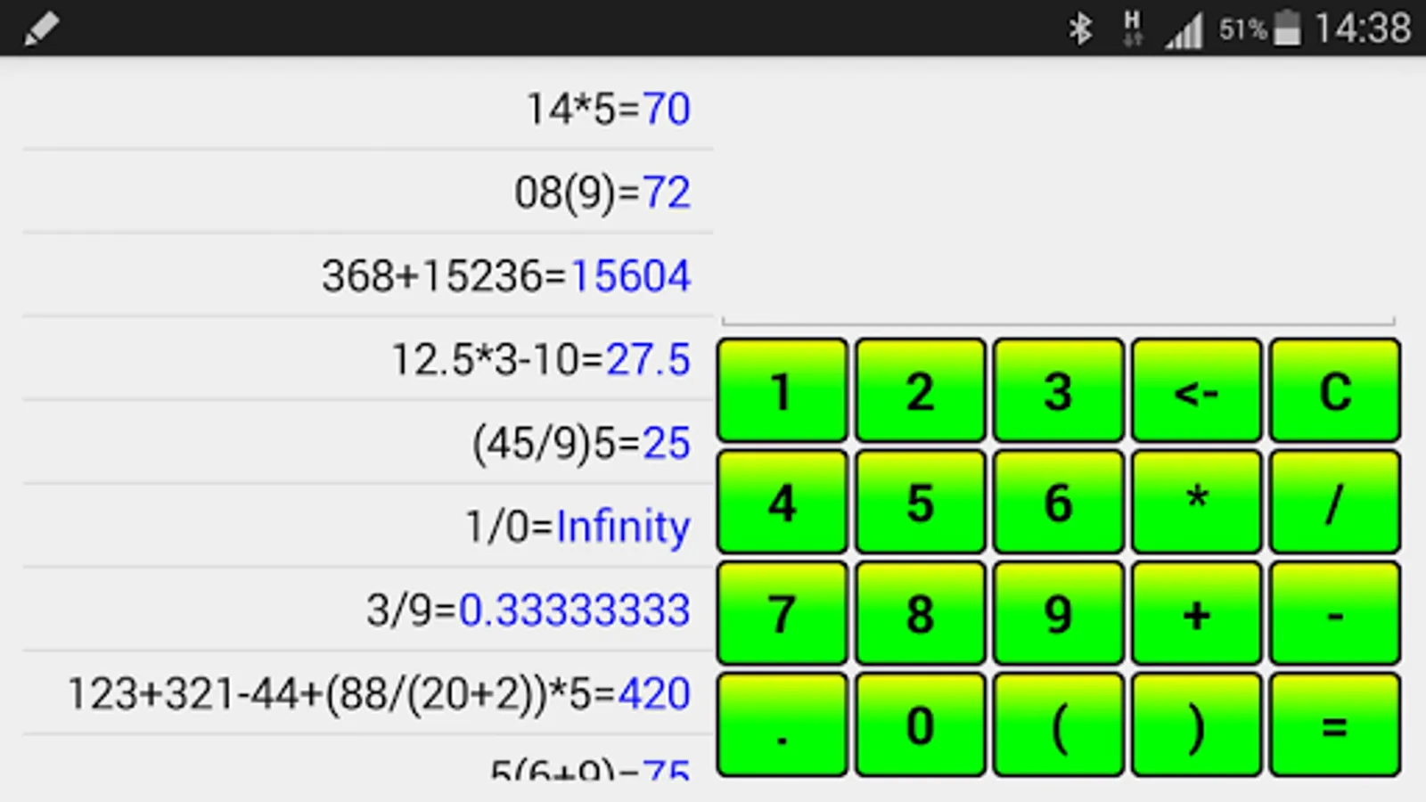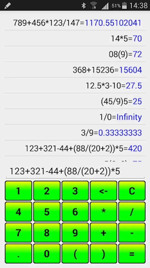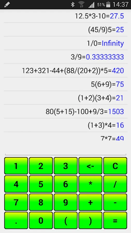 Calculator with support expressions and history of calculations.