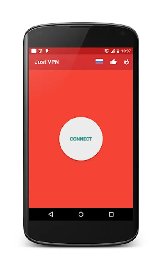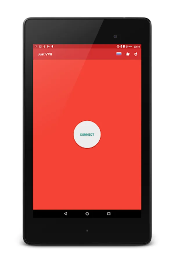 To connect to a VPN network simply click the "Connect" button and then click "OK" in the connection request. If the connection is established successfully, the "Connect" button will change its color and its name to "Disconnect". If you can not connect to the VPN-network or you are not satisfied with its speed, you can choose a different server by clicking on the flag button