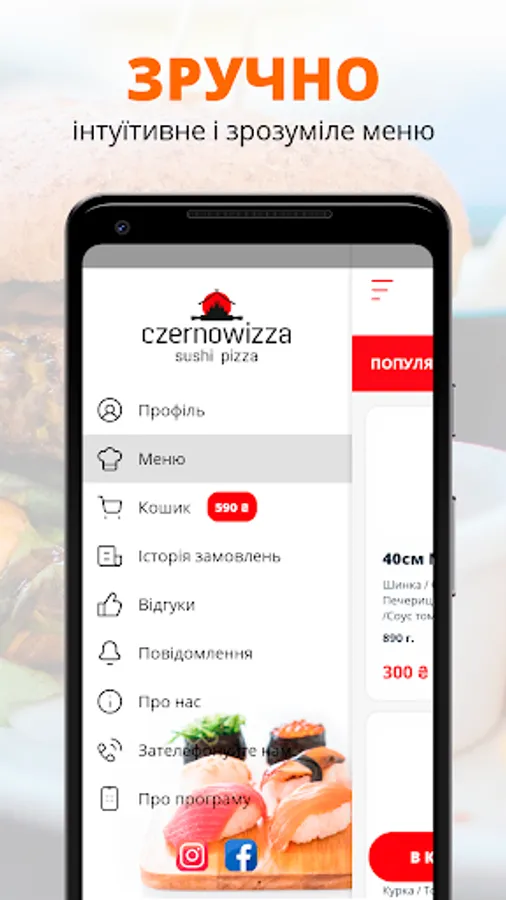 Use the convenient "Czernowizza" food ordering application.