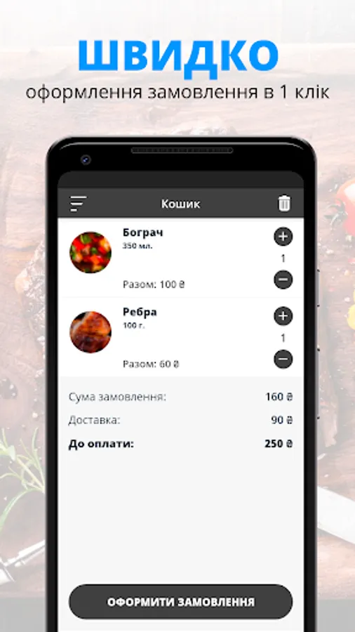 Download our application, place an order and enjoy your favorite food! Bon appetit!
