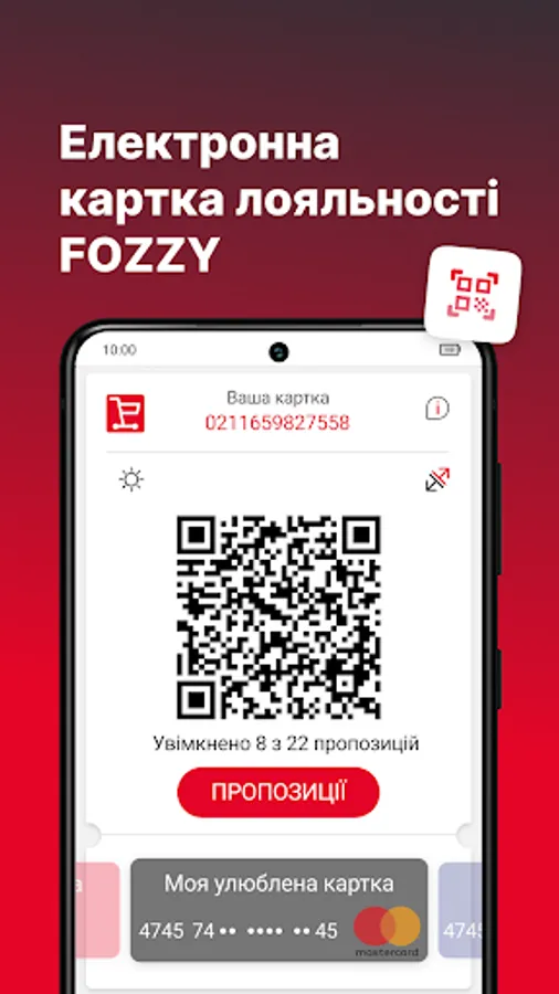 The card is always with you. Scan the QR code at the checkout every time you make a purchase in FOZZY hypermarkets.