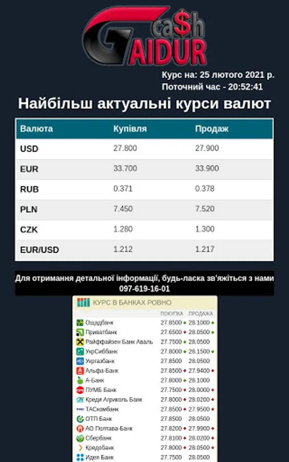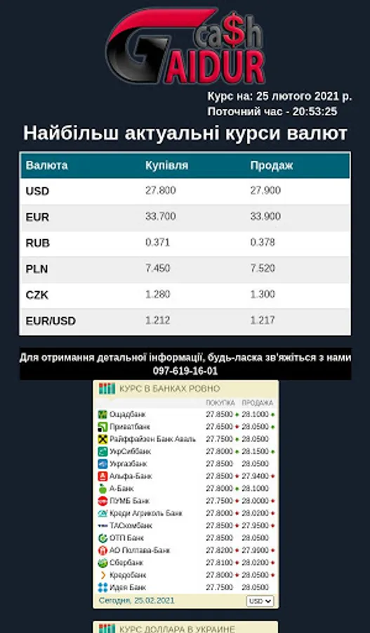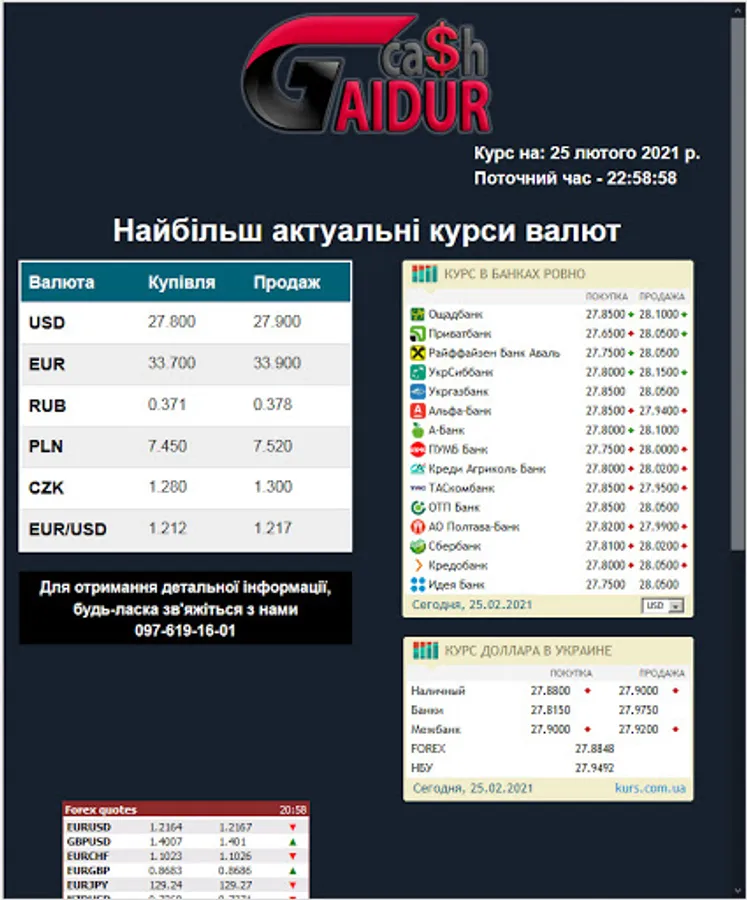 The official exchange rate of Ukraine