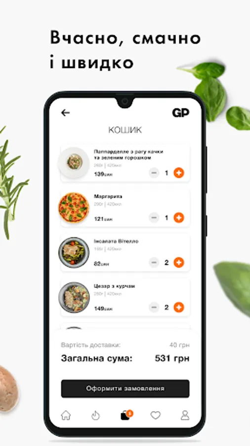 View available dishes on the menu, order lightning delivery and receive notifications of new dishes.
