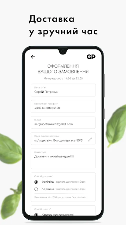 We are always at hand and glad of your order. We cook quickly, with great love for our work.